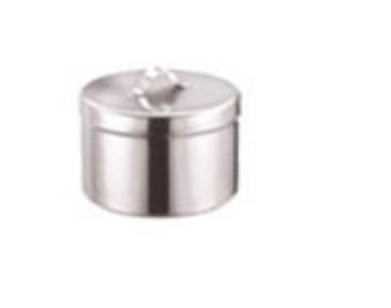 »Recipiente con Tapa para Agujas o Ungüento., »Fabricado con acero inoxidable. (18/8), »Incluye tapa con asa., »Esterilizable.
